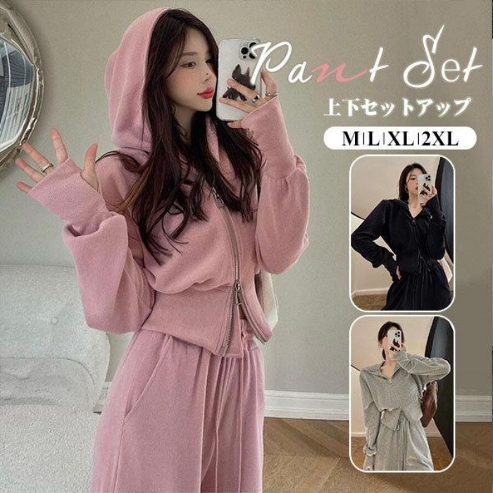 セットアップ スウェット パーカー レディース 長袖 フード付き