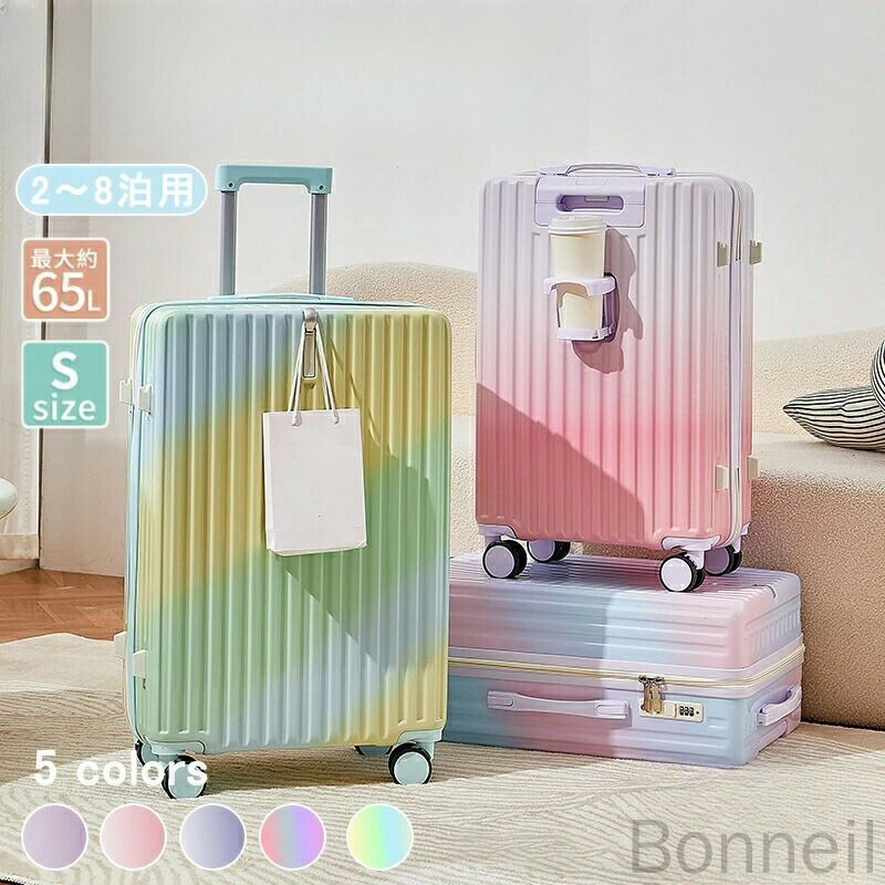 グラデーションカラー5色展開 小中大型対応 耐衝撃構造で安心の旅行用キャリーケース おしゃれでかわいいレディース向け