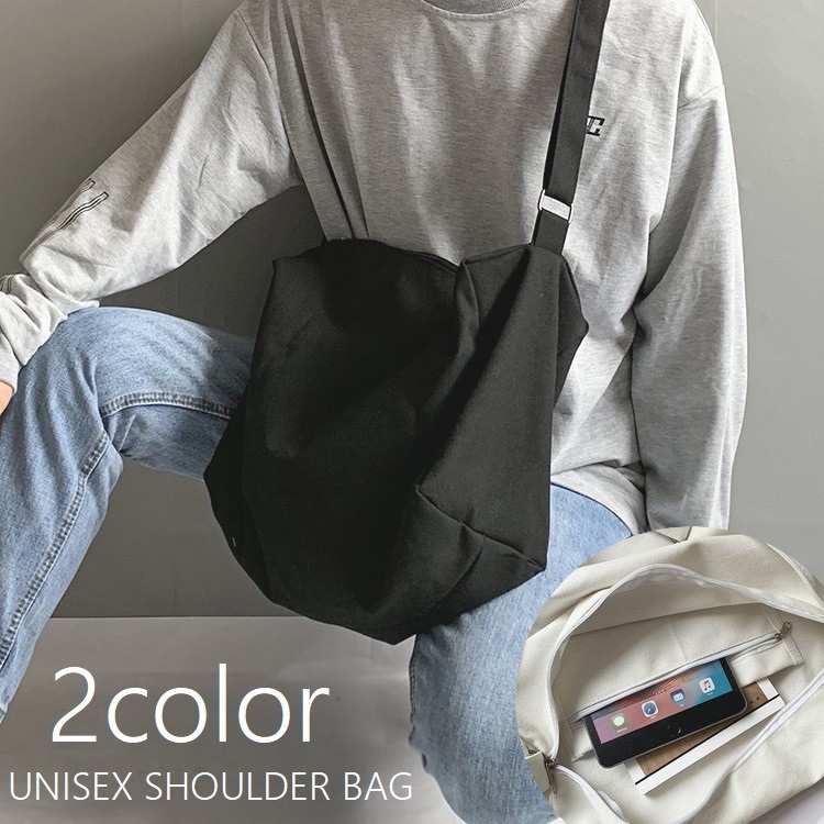 撥水ショルダーバッグ 軽量大容量 男女兼用 斜め掛けバッグ キャンパス生地 マチあり内ポケット付き 通勤通学お出かけ用 シンプルカジュアル 白黒