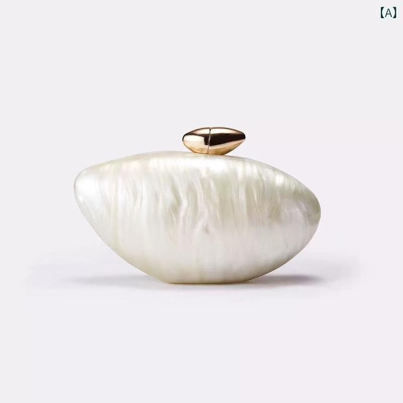 バッグ 欧米風 ファッション アクリル 光沢 卵型 ショルダー 斜めがけ クラッチ パーティー 手持ち 鞄 個性的 日常使い マグネット開閉 硬め 携帯ポケット 通勤 石目調
