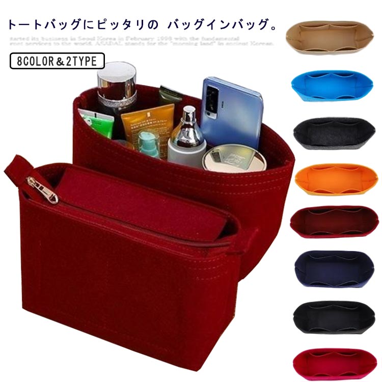 インナーバッグ バック インバッグ バッグインバッグ ファスナー 小さめ インナーバック 大きめ 収納 フェルト レディース バッグの中身 収納バッグ 整理 軽量 軽い 大容量 ポーチ 整理整頓 自立
