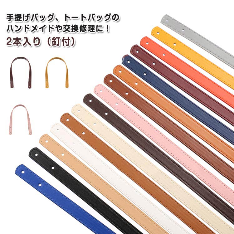 レザーのカシメタイプの持ち手です!2本セット もち手 手提げバ