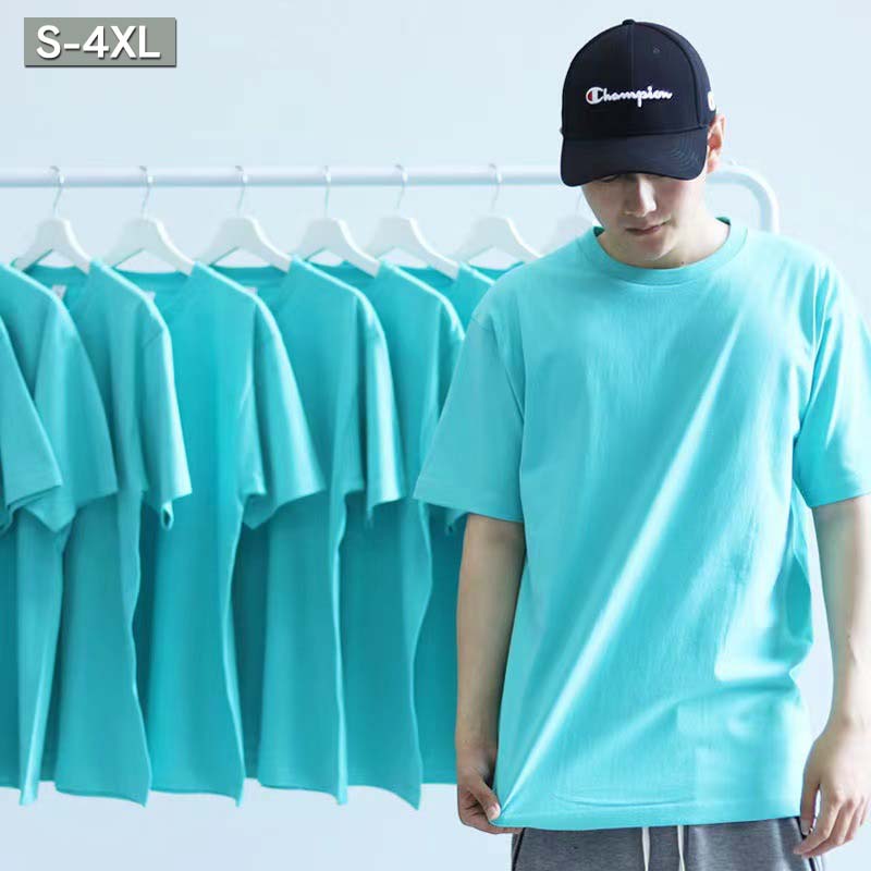 Tシャツ ティファニブルー メンズ 夏用 半袖 ティーシャツ 秋 春 無地 Uネック トップス アメカジ 大きいサイズ ゆったり 人気 カジュアル 普段着 通勤 アウター 韓国風 レディース おしゃれ