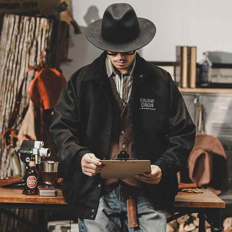 ジャケット メンズ スタジャン ブルゾン アウター スエード調 ヘビーウェイト 厚手 裏起毛 刺繍 ゆったり ルーズフィット ストリート 秋冬 冬 アメカジ