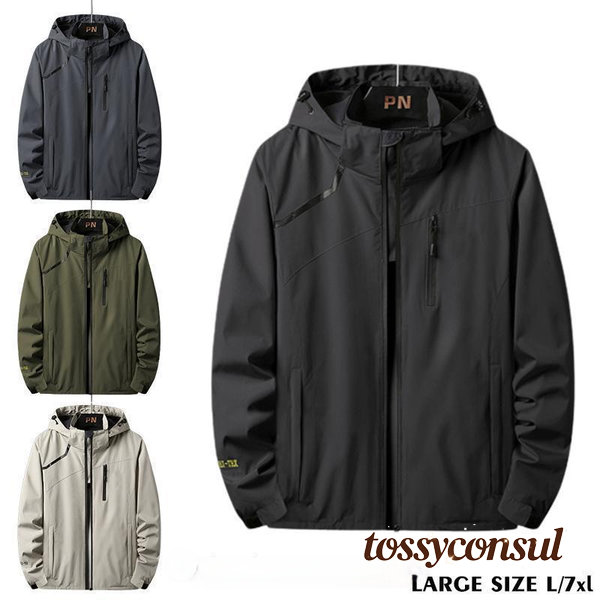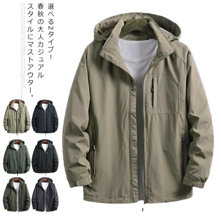 カジュアルジャケット メンズ アウター コート ブルゾン マウンテンパーカー ライトアウター ジャンパー フード付き アウトドア カジュアル 防寒 防風 大きサイズ 春 秋 40代~60 無地