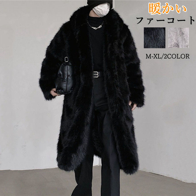 メンズ ファーコート 毛皮コート ロング丈 フォクス アウター フェイクファー 暖かい トレンド ボリューム おしゃれ メンズファッション オシャレ 韓国 冬物 真冬