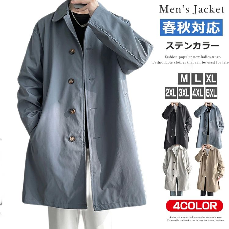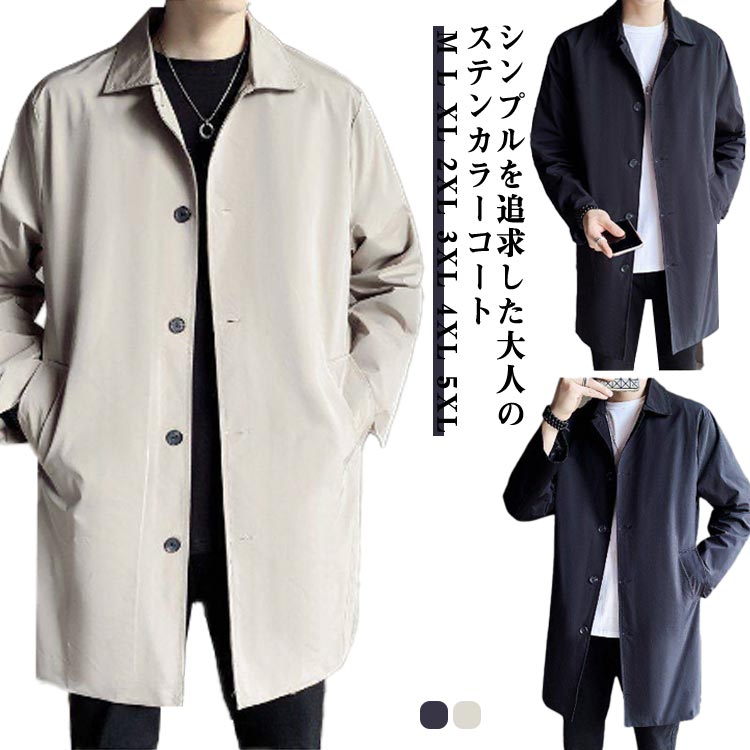ステンカラーコート メンズ ストレッチ 大きいサイズ ビジネス スプリングコート ネイビー ベージュ 春 秋 冬 ロングコート 春コート 男性 服