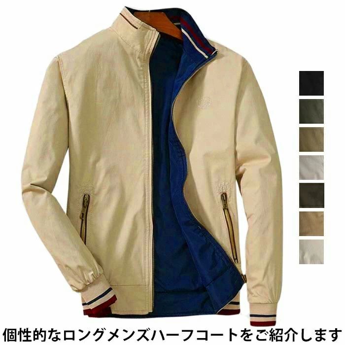スプリングコート メンズ ハーフコート ライトアウター カジュアルジャケット 無地ジャケット 春秋 春物 切替 お洒落 お兄系 ファッション かっこいい 春新作 人気