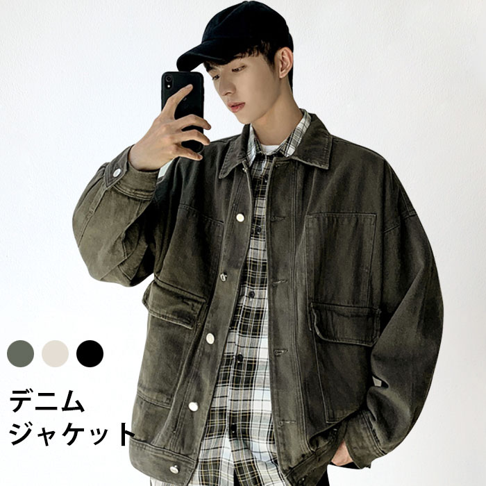 デニムジャケット メンズ ジャケット デニム Gジャン 色落ち ウォッシュ加工 ドロップショルダー ポケット付き ライトアウター お洒落 ヴィンテージ 春秋 冬新作 カジュアル