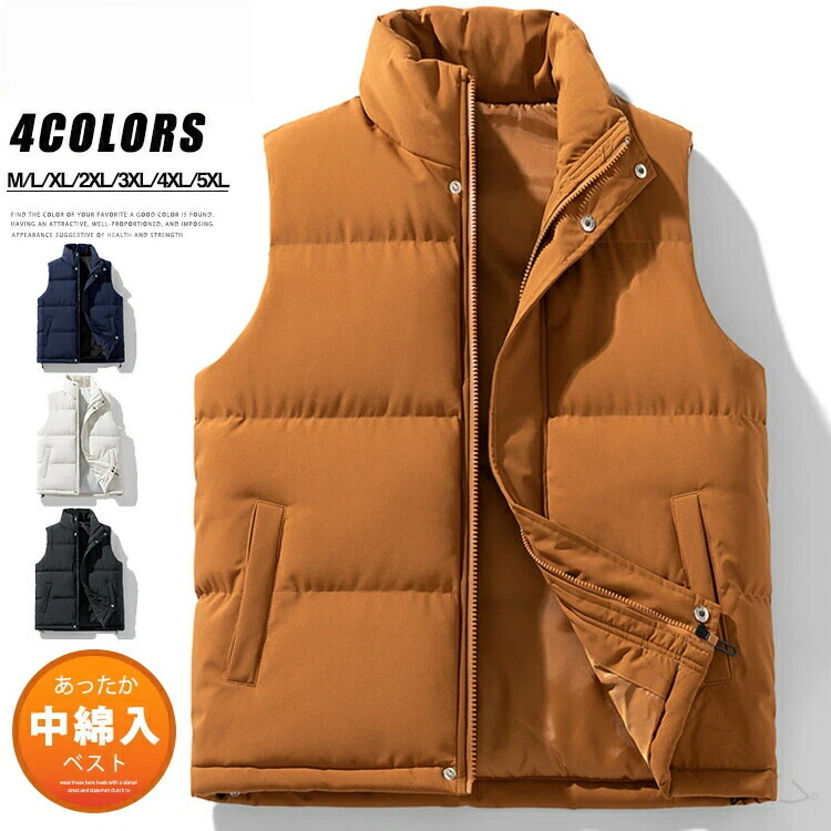 中綿ベスト メンズ 防寒ベスト ハイネック フルジップ 厚手中綿入りアウター 軽量キルティングベスト 通勤 通学 シンプルで暖かいメンズベスト あったか冬着