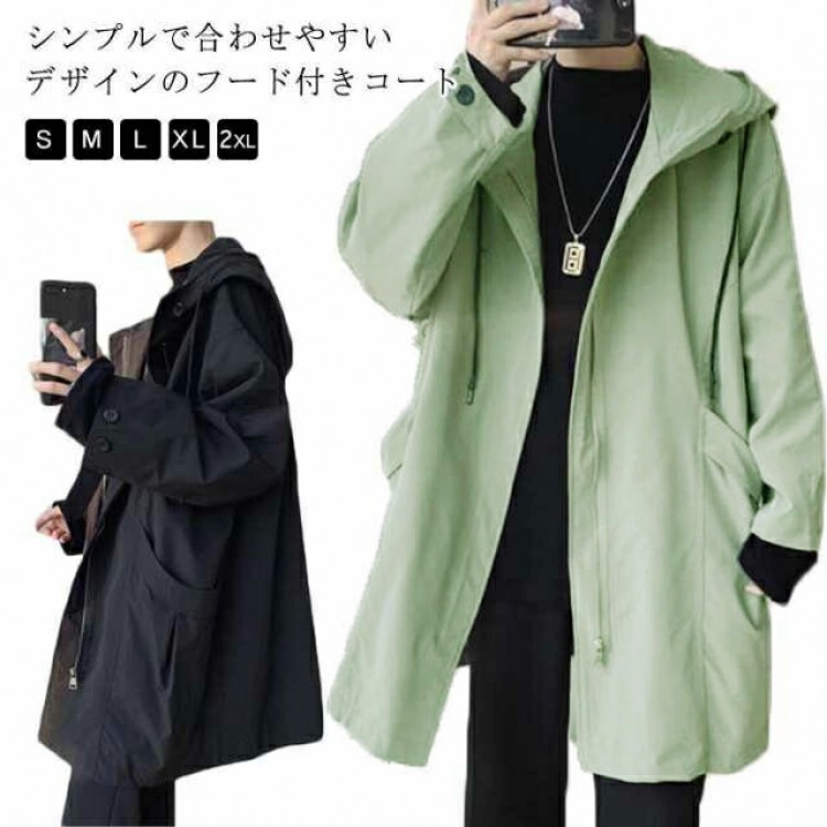春 コート メンズ ステンカラーコート フード付き スプリングコート カジュアル ハーフコート 春物 秋物 薄手 裏地付き オーバーサイズ トレンチコート ゆったり ミドル丈