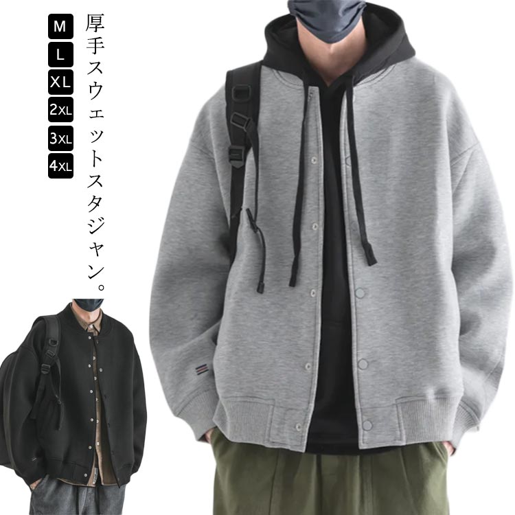 スウェット カーディガン ユニセックス スタジャン メンズ 春 秋 ブルゾン アウター ジャケット カジュアル ジャンパー 体型カバー ゆったり 暖かい 厚手 アメカジ 通学 通勤 防寒