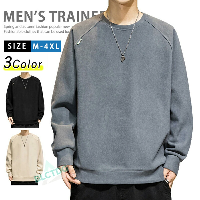 トレーナー長袖メンズスウェットトレーナー無地薄起毛長袖tシャツトップスボアトレーナークルーネックプルオーバールームウェアカジュアルインナーカップルスポーツストリートメンズトレーナーおしゃれパジャマお揃