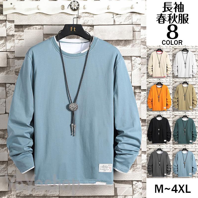 メンズ プルオーバー レイヤード風Tシャツ 重ね着風 スウェット クルーネック トレーナー オシャレ 長袖 トップス ルームウェア 大きいサイズ ゆったり カジュアル 秋服 3XL 新作 春服