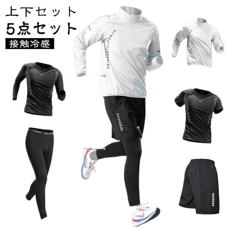 コンプレッションウ 吸水速乾 セットアップ スポーツウェア 接触冷感 トレーニングウェア 上下セット 長袖 ジャージ メンズ 半袖