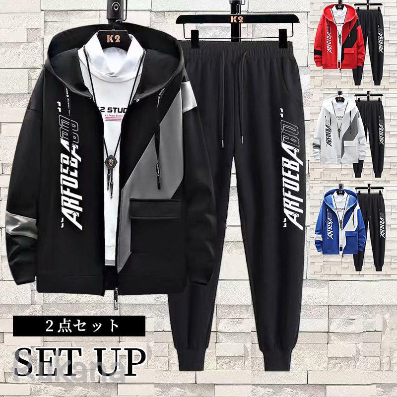 ジャージ セットアップ メンズ スエット 上下セット ロングパンツ ジップアップ アウター 春秋 スポーツウェア パーカー 運動用 おしゃれ ルームウェア 部屋着