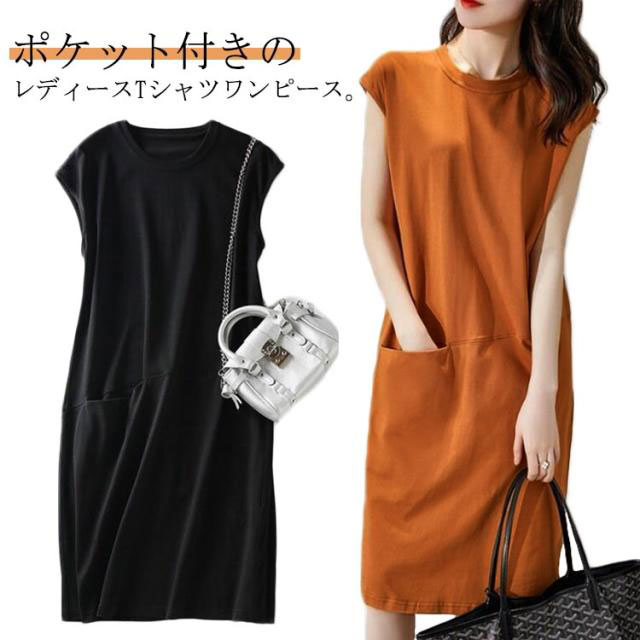 フレンチスリーブ Tシャツ ワンピース レディース 春 夏 ノースリーブワンピース ひざ丈 ラウンドネック 部屋着 リラックス シンプル 無地 ルームウエア