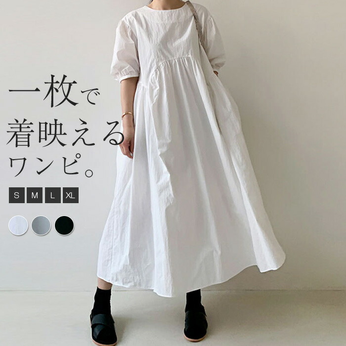 さらっと着やすい綿 大人ナュラルなロングワンピース 大人可愛いワンピース 1枚で決まる 楽ちん 涼しい リラックス ゆったりワンピース -