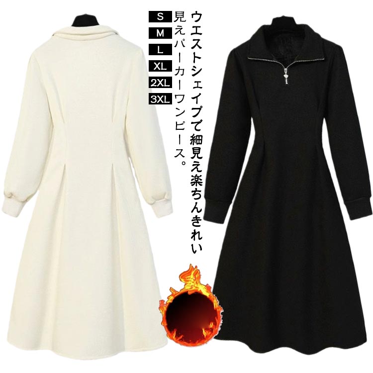 ハイウエスト ウエストタック ロングワンピース 秋 おしゃれ 長袖 冬 ロング パーカーワンピース 裏起毛 スウェットワンピース