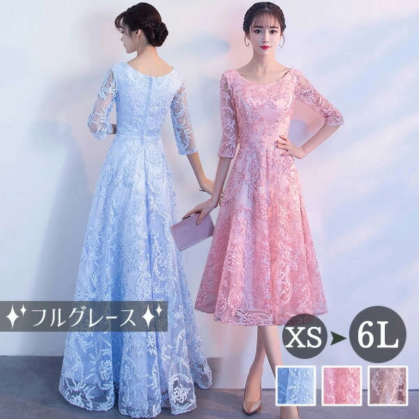 ドレス 大人 ピアノ 発表会 演奏会 ピアノ発表会 演奏会用ドレス 結婚式 母親 ロングドレス 演奏会用ロングドレス 大きいサイズ 演奏会ドレス 袖付き 高校生 ミモレ丈 水色 XS 2L 3 ピンク