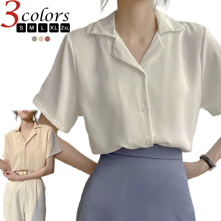 レディース シャツブラウス 半袖 ブラウス 夏 シャツ 通勤 大きいサイズ トップス きれいめ Vネック オフィスカジュアル 白 韓国 ファッション 体型カバー 着痩せ シンプル 半袖ブラウス