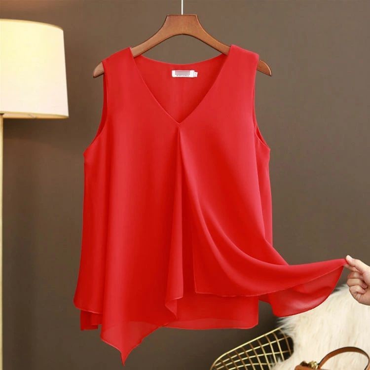 婦人 シフォン レディース きれいめ カジュアル オシャレ ノースリーブブラウス 女性 シンプルデザイン 無地 ノースリーブ ス おしゃれ 大きいサイズ Vネック Aライン