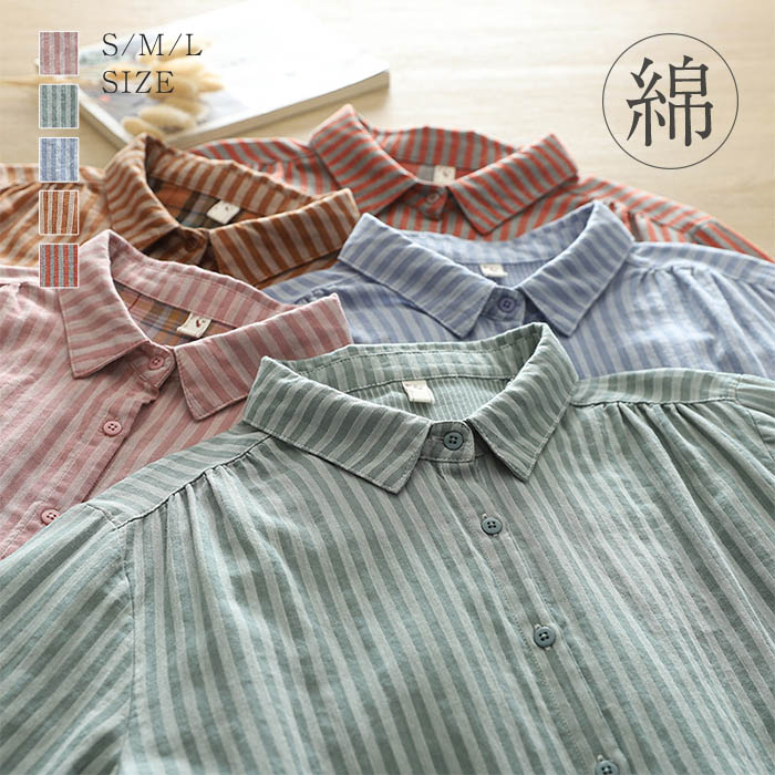 カラフル ガーゼ シャツ 2重ガーゼ シャツブラウス レディース 半袖 長袖 トップス 春 夏 秋 冬 ガーゼシャツ 羽織り 肩ギャザー 柔らかい 柔軟 大人 ナチュラル オールシーズン
