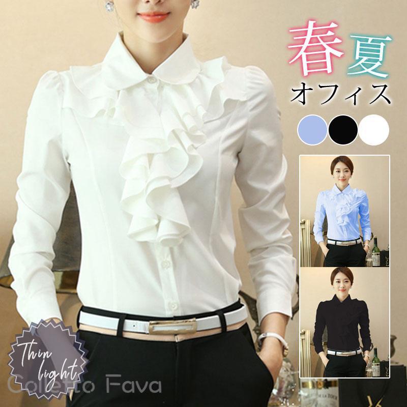 ラグジュアリー フリル シャツ ブラウス 春夏 秋 シフォン レディース 長袖 オフィス トップス 通勤 インナー 入学式 入園式 スーツ