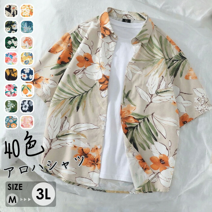 NEW40色 アロハシャツ レディース メンズ アロハ柄 半袖 葉柄 花柄 男女兼用 上着 夏 シンプルデザイン ハワイアン 夏物 開襟シャツ 日焼け止め カジュアル レトロ 3L d オープンカラー