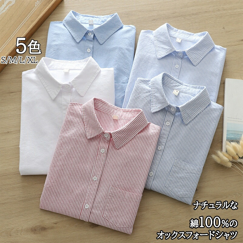 シャツ レディース オックスフォードシャツ 長袖 シャツ襟 角襟 綿100% コットン100% カジュアル リラックス 大人 ゆったり 肌触り良い シンプル 無地 大きいサイズ 通勤 オフィス 着回し