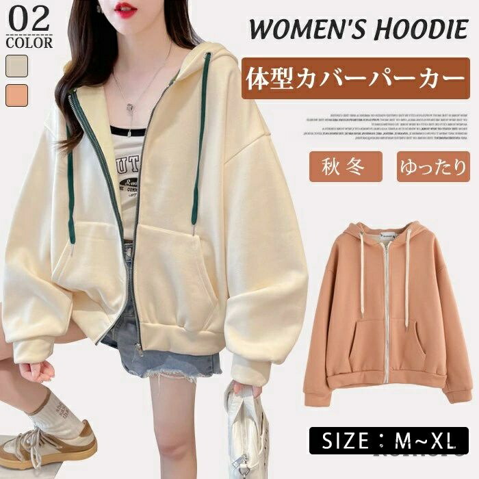 ~2 ジップパーカー カジュアル 体型カバー 無地 春秋 スウェット ジップアップ