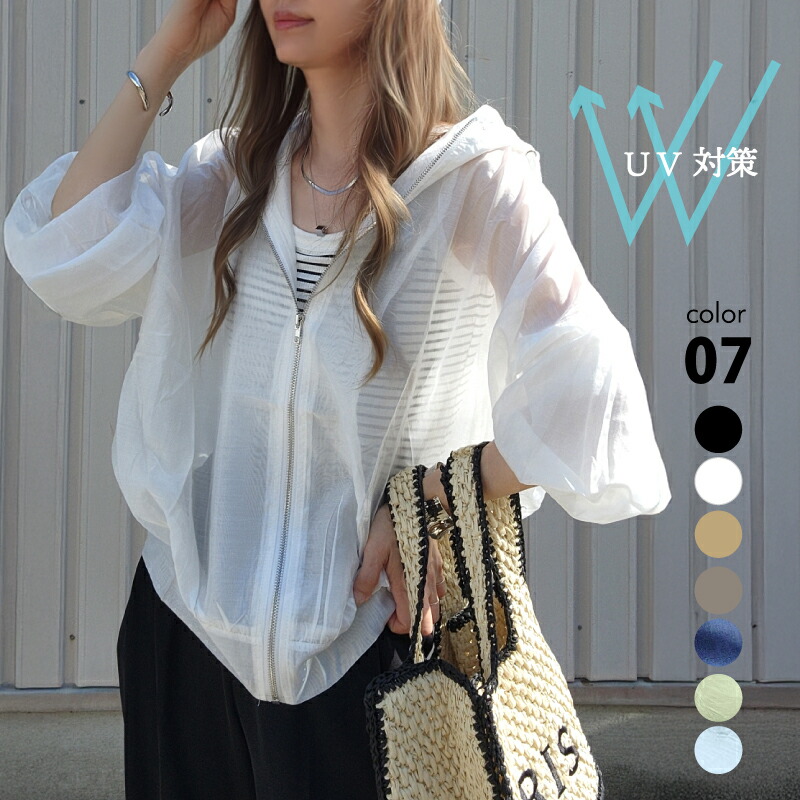 秋 夏 春 カーキ ホワイト ブラック 日焼け対策 リブ 冷感 シアーパーカー パーカー シースルー レディース