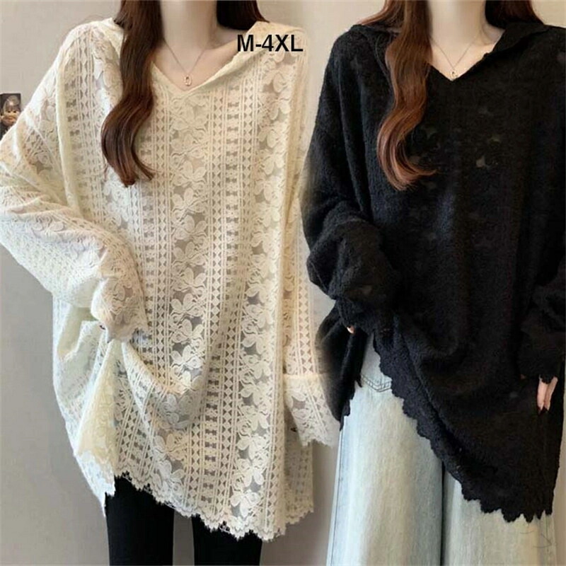 レディース用大きいサイズの長袖レースパーカー 総レース素材で透け感があり重ね着に最適 春秋のファッションにおすすめ