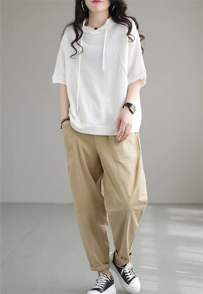 tシャツ レディース フード付 半袖 Tシャツ ハーフジップ 夏秋 カットソートップス 女子 アメカジ キレカジ 白 vネック プルオーバー パーカー 無地 新作 大人 おしゃれ きれいめ 美 スリム