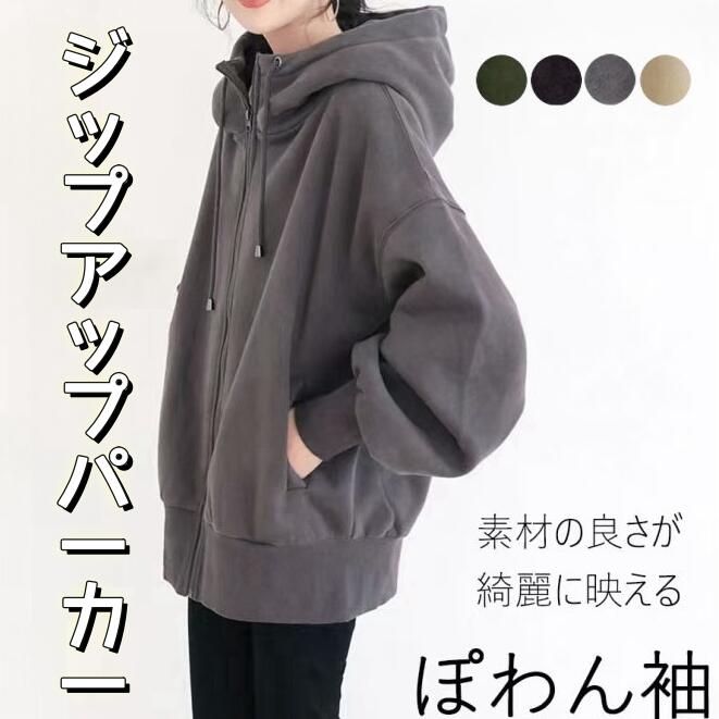 パーカー レディース グレー 秋冬 裏起毛 ジップアップ フード付き シンプル ゆったり カジュアル トップス アウトドア 普段使い 暖か