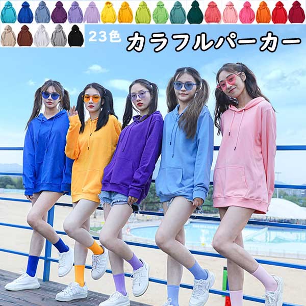 薄手 春秋 パーカー レディース カラフル 無地 大きいサイズ プルオーバーパーカー スウェットパーカー フーディー スエット パーカ フード付き ゆったり 春 秋 白 黒 赤 緑 青 ピンク グレー
