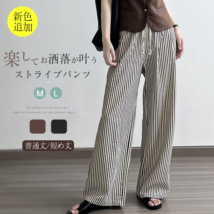 【新色追加!!】高レビュー★★★★「低身長/普通身長」ストライプパンツ ワイドパンツ キレイめ 夏 バギーパンツ 美脚シルエット