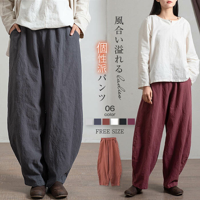 バルーンパンツ レディース リネンパンツ サーカスパンツ リネン ワイドパンツ カーブパンツ イージーパンツ コクーンパンツ 春 夏 秋 冬 個性的 ゆったり 綿麻混 パンツ 体型カ ボトムス