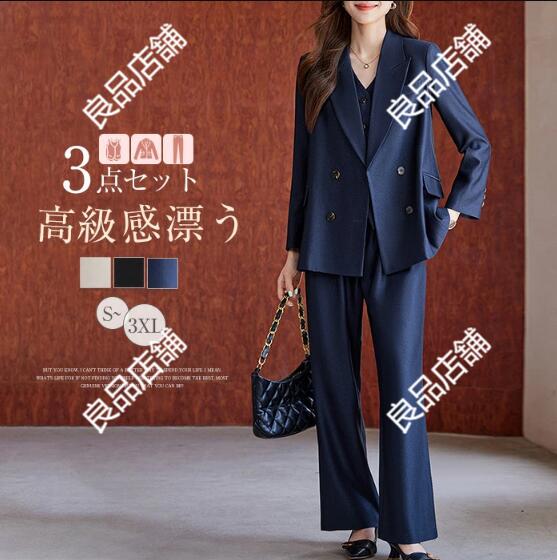 スーツ 3色 3ピーススーツ 3点セット テーラードジャケット+シャツ+ベスト+ワイドパンツ ビジネス スリムスーツ スタイリッシュスーツ レディーススーツ S~4XLママスーツ パンツス フォーマル