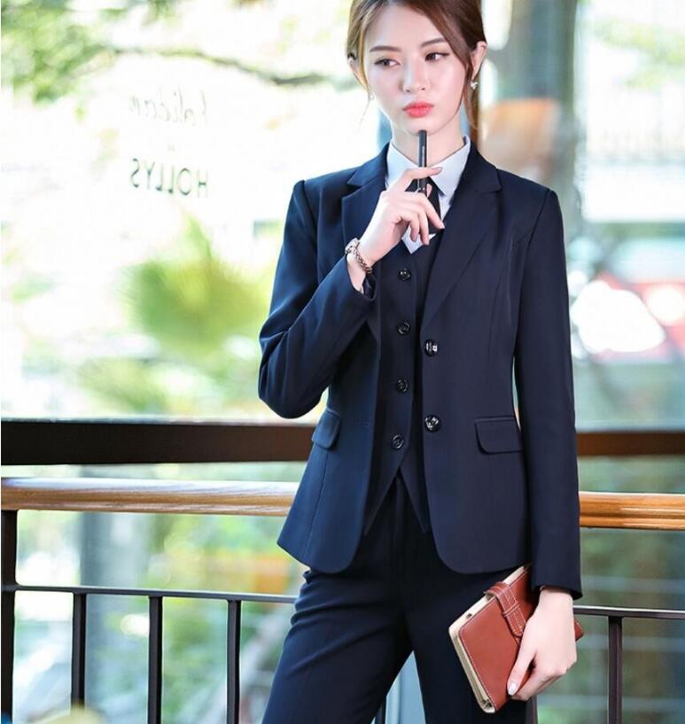 超人気 無地 ネイビー セットアップ 3点セット レディース ジャケット+ベスト+9分丈パンツ レディーススーツ 3ピーススーツ S~ 1つボタン スリムスーツ スタイリッシュスーツ