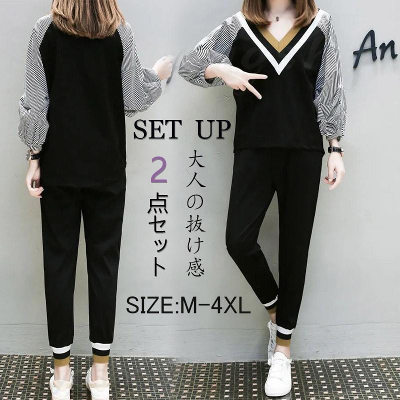 レディース セットジャージ 上下セット スウェット セットアップ 秋服 長袖セット 長ズボン 春秋 スポーツウェア 部屋着 大人 カジュアル 運動着