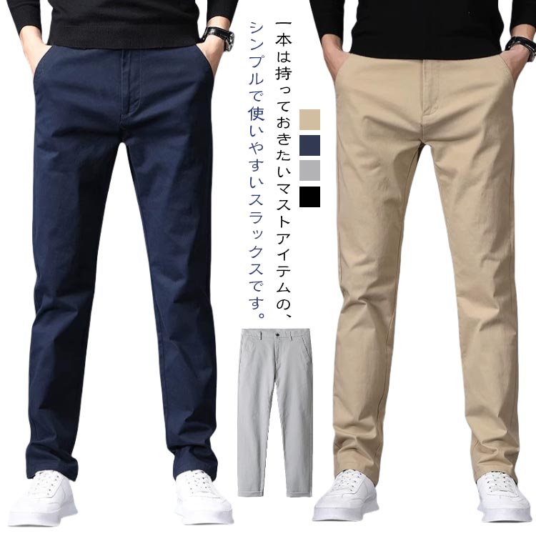 スラックス チノパンツ スリム スーツパンツ ストレートパンツ 無地 シンプル 綿100% ナチュラル 夏 ズボン チノパン カジュアルパンツ