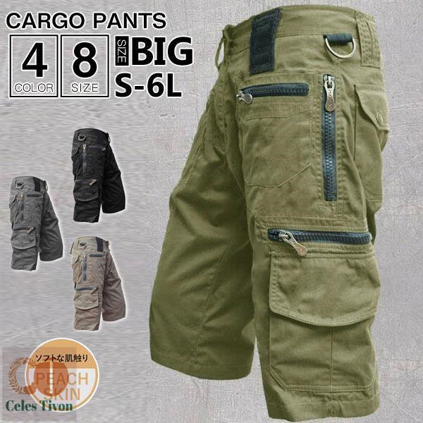 カーゴパンツ メンズ 大きいサイズ ストレッチ 七分丈 ポケット 綿 ボトムス クロップドパンツ チノパンツ ワイドパンツ ショーツ おしゃれ 半ズボン 夏物 春夏秋 メンズファッション ハーフパンツ