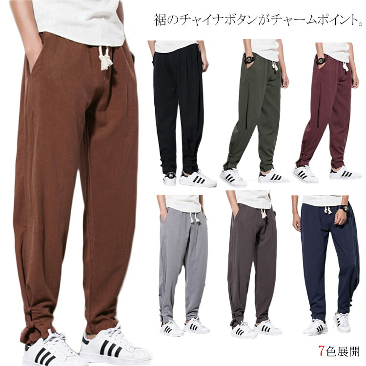 サルエルパンツ イージーパンツ リラックス パンツ メンズ エスニック チャイナボタン チノパンツ テーパードパンツ コットン ゆったり 春夏 秋 ハロンパンツ 大寸 カジュアル 秋服 2019 無地