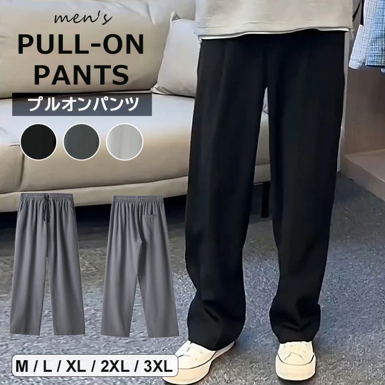 イージーパンツなのにきれいめシルエットのプルオンパンツ プルオンパンツ ゆったりストレート ズボン パンツ スウェットパンツ 全3色 ストレート メンズ ルームウェア