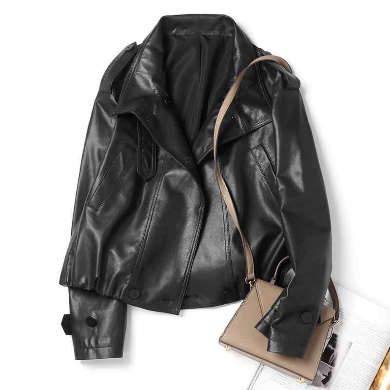 レザージャケット レディース 春秋 本革 羊革 植物タンニン鞣し 高級感 襟付き テーラード ダブルボタン 長袖 ゆったり オーバーサイズ 着回し 普段使い ストリート ワークテイスト 欧 カジュアル