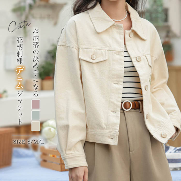 デニムジャケット レディース デニム ジャケット 春 ショート丈 ライダース スプリング コート 花柄 刺繍 長袖 ライトアウター 春コート プリングコート 通勤 カジュ 春服