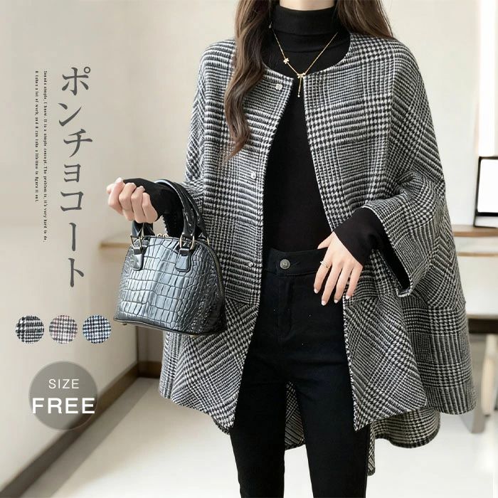 ポンチョ コート レディース ジャケット 秋 冬 ポンチョコート トレンチコート チェック柄 マント ケープ 前開き 羽織 カーディガン トップス アウター 華奢見せ 細見え 体型カバー 女性