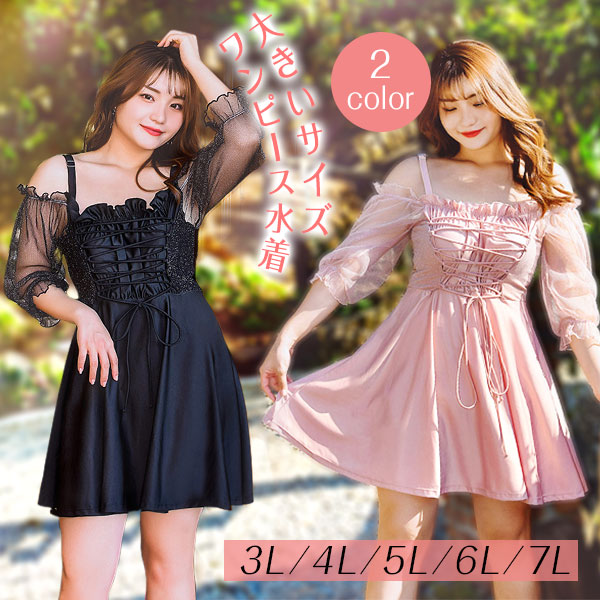 水着購入でUV帽子プレゼント 大きいサイズ水着 ぽっちゃり水着 大きいサイズ 体型カバー おしゃれ ワイヤー入り ワンピース レディース 袖透け感あり インナーショーツ ピンク 3L 4 ぽっちゃり