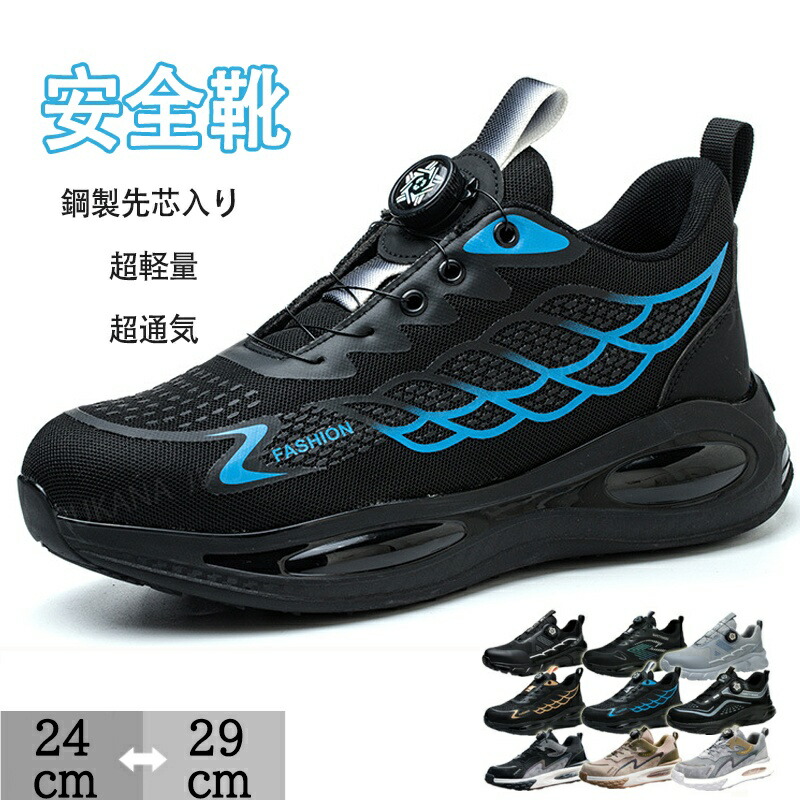 安全靴 ダイヤル式 作業靴 あんぜん靴 軽量 メッシュ 通気性 おしゃれ ワイヤー式安全靴 BOA セーフティシューズ 黒 グレー 鋼製先芯入り 釘踏み抜き防止 ウォーキング 靴 耐摩耗 蒸 シューズ